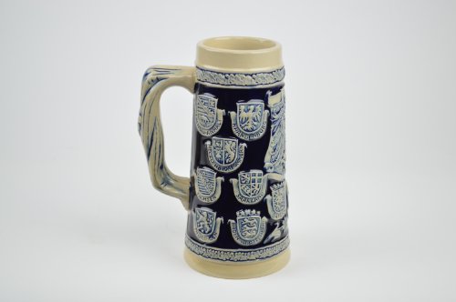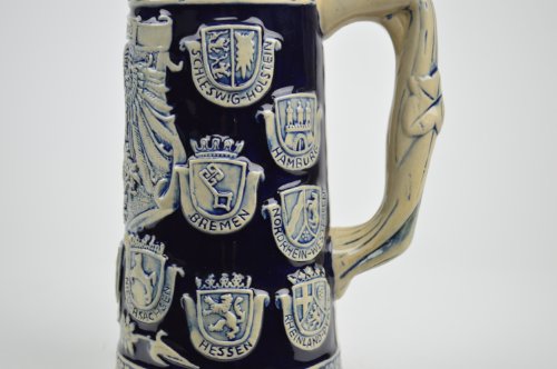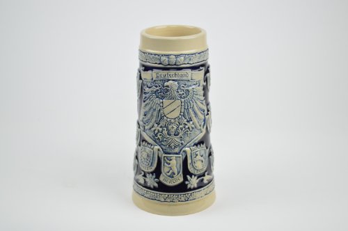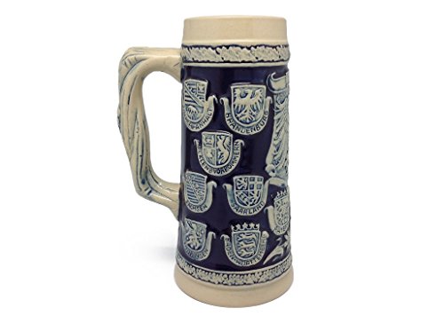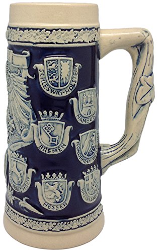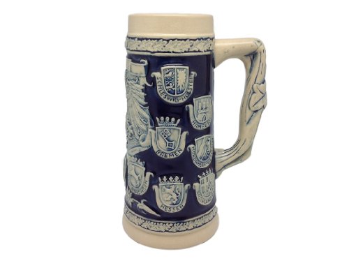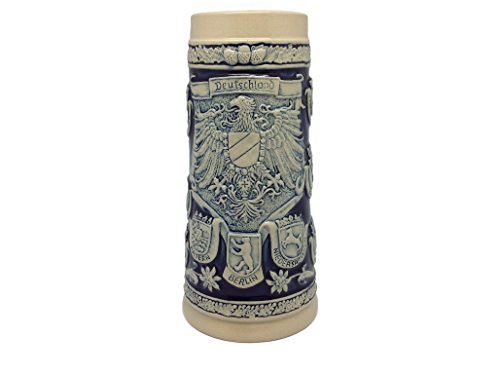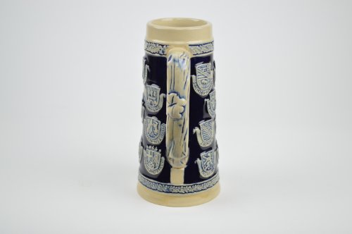 Product Description German Coat of Arms Ceramic Stein without metal lid. This decorative cobalt blue engraved beer stein makes for a great classic gift or decorative accent to your collection! Stein height is 8.5" Volume: 1.1 Liter 0