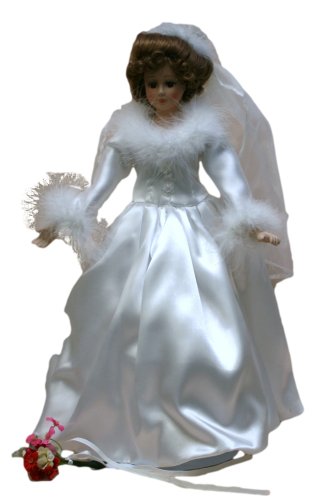 - Feature : Porcelain Doll 17 inches Standing / Full-Skirted, White Gown / Feathered Embellishments and Medium-Length Veil / Small Bouquet of Flowers / Doll only and Doll Stand Not Included