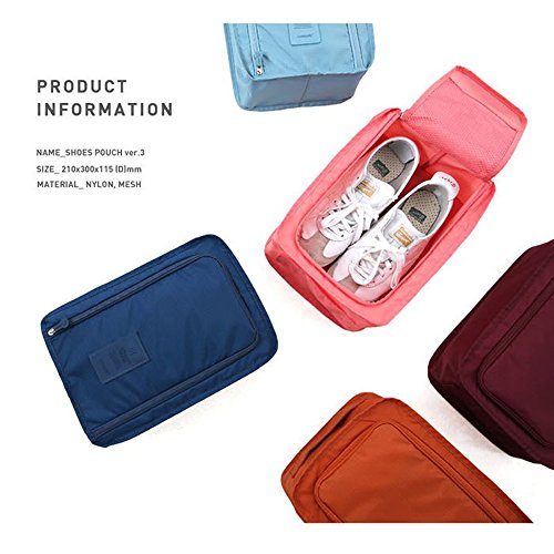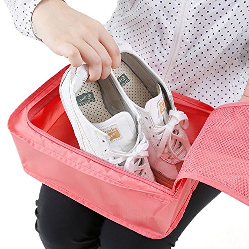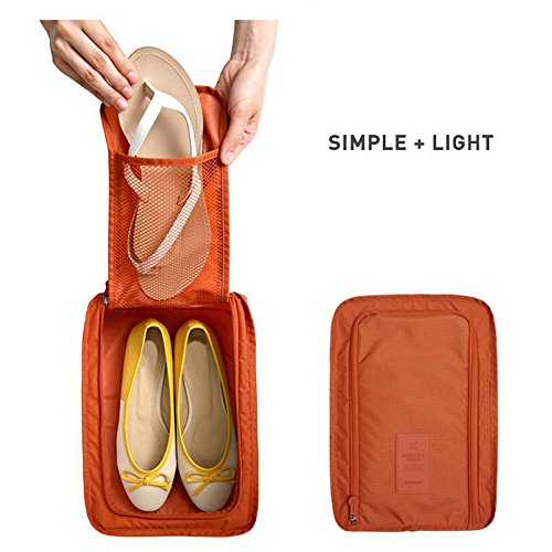 Product Description Light as a feather, this zippered Shoe Sac is the simple solution Ultra lightweight Quickgrab handle. Water-resistant and anti-staining properties.The design of middle zipper make it more convenient for organization. Large capacity:It holds two pairs of sandals or Essentials for TRAVEL BUSINESS:Large capacity ,they can used for organizing your one pair of hiking boots.(according to CLEAN MAINTANCE:To do partial cleaning for the obvious stains. DO not use detergent with decolorizer or fluorescer. Please immerse he shoe bags in cold water and use banister brush to clean. Please reduce the amount of the detergent if there are no stubborn stains. Please put some salt or vinegar to avoid color fading for the first time cleaning Please let it air dry ,do not recommend to sunshine directly. 0