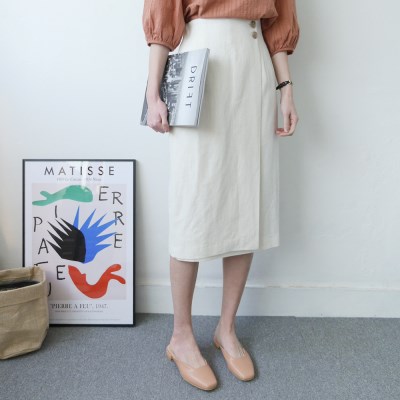 リンネン100素材のスリムスカートをご紹介いたします。 きれいに一直線に落ちるラインがフェミニンしながらも 断定なルックで演出してくれます。 ラップスタイルのデザインで なっており、着用するのが便利です。 後ろの部分はバンディングで処理されていて サイズ55-66お客様が着用なさるとき、やすいスカートでございます。 ベーシックなデザインで、ティーシャツ、ブラウス、ニートなどにもよく似合う リンネンスカートで夏までずっと着用してもいいと思うのでお勧めいたします。 MODEL / 166cm , 55size , S or 26 , SHOES_240 アイボリーは交換、払い戻しが難しいので慎重な購入お願いいたします。