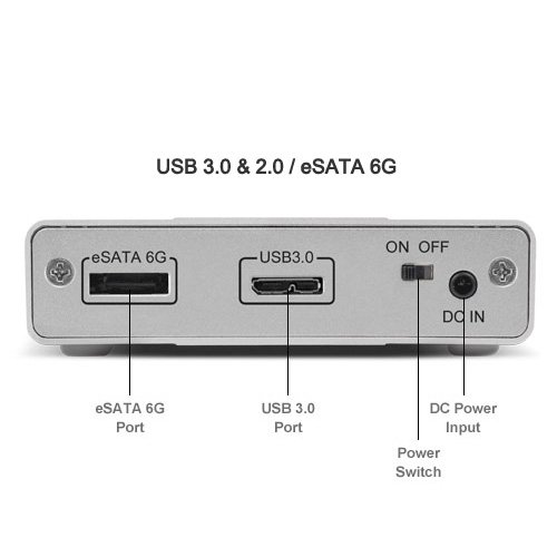 OWC Mercury Elite Pro mini Bus-Powered, Multi-Interface Storage Solution. This OWC Mercury Electra 6G SSD based Plug and Play external solution provides Exceptional External Drive Performance - up to over 280MB/s, Ultra-Quiet & Ultra Low-Power,No moving parts, exceptional shock tolerance. The Mercury Elite Pro mini Portable Storage Solution SSD delivers up to 600MB/s data transfer speeds for demanding data storage and backup needs. All that performance resides in an impact resistant, heat dissipating 5.5 in (L) x 3.8 in (W) x 1.1 in (H) brushed aluminum enclosure with super-quiet operation. With the highest quality drive mechanism built into a shock resistant portable aluminum enclosure, the Mercury Elite Pro mini is ready to go wherever you need an A/V, Digital Photography, Professional Music, Graphics, General Data, and Time Machine ready storage solution. Interfaces: USB 3.0 & 2.0; eSATA 6G. The USB 3.0 Micro-B port is backwards compatible with USB 2.0 cables (USB 3.0 standard A to Micro-B connecting cable is included). All interface cables are included. Bus-powered via USB 3.0 (DC to USB connector included). Data transfer speeds up to 600MB/s (via eSATA; 500MB/s via USB 3.0). Drive speeds of up to 7200RPM or Solid State Drive. Portable size at 5.5in(L) x 3.8in(W) x 1.1in(H). Brushed aluminum, impact resistant, heat dissipating enclosure. Super-quiet, fanless operation. Asmedia 1051E and 1456 high-performance chipset. 3 Year OWC Solution Limited Warranty. Includes: OWC Mercury Elite Pro mini,18 in (46 cm) High-quality eSATA connecting cable,18 in (46 cm) High-quality USB 3.0 connecting cable, High-quality DC to USB connector, Pre-installed Backup and Utility software (Intech® SpeedTools Utilities? OEM (For Mac OS 8.6, OS X 10.3.9 or later only), ProSoft Engineering® Data Backup for Mac OS X v10.2.8 or later, NovaStor NovaBACKUP® for Windows 2000 or later), Over 1.5GB of Freeware/Shareware/Public domain software pre-installed.Feature