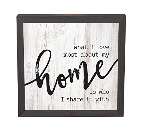 Love Most About My Home White Wash 11 x 11 Inch Solid Pine Wood Farmhouse Frame Wall Plaque