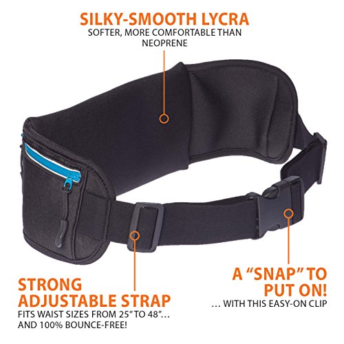 2) Fully adjustable elastic waistband... for a perfect fit a bounce-free run. Fits waist sizes from 25" to 48".