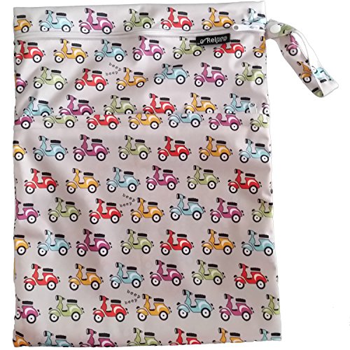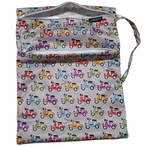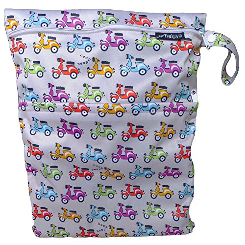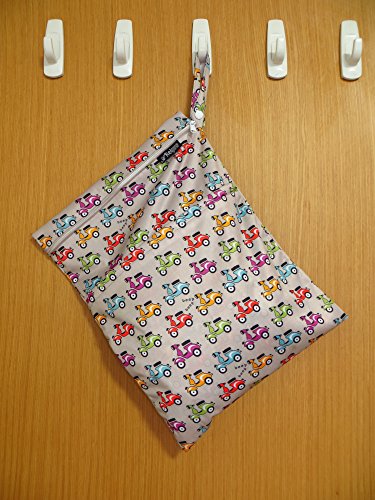 #1 Premium Quality Waterproof PUL Durable Designer Wet Bag for Baby Cloth Diaper / Multipurpose Storage Organizer Bag ★ Machine Washable with Snap handle for strollers - for girls / guys. ★ (Grey Based with Scooters)★Arelpro★