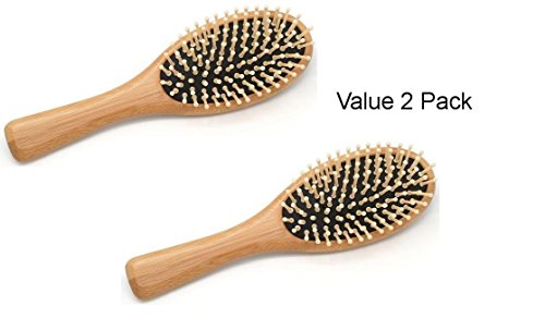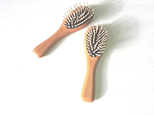 (2 Pack) Wooden Bamboo Cushioned Detangle Massaging Hairbrush Travel Purse Size