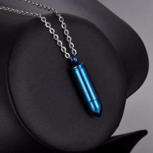-. Title : HooAMI Blue Bullet Pendant Cremation Urn Necklace