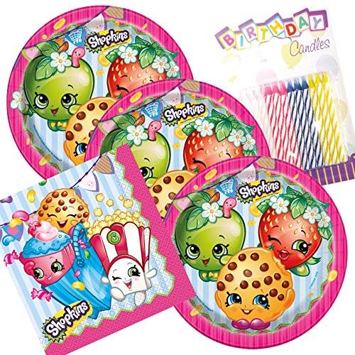 Shopkins Theme Plates and Napkins Serves 16 With Birthday Candles