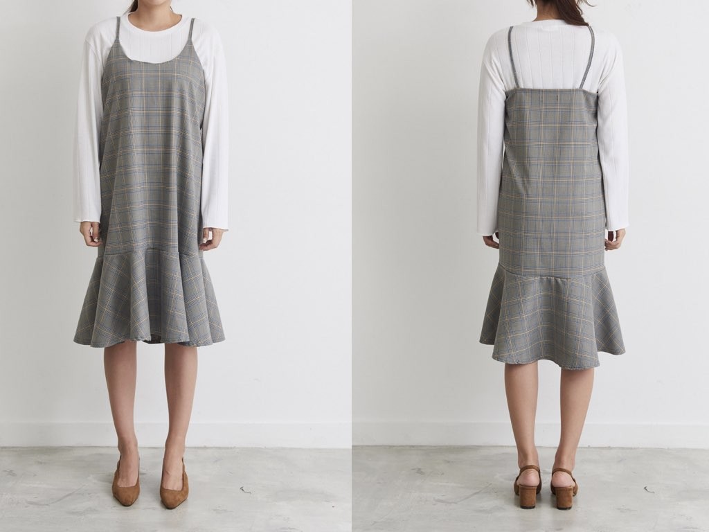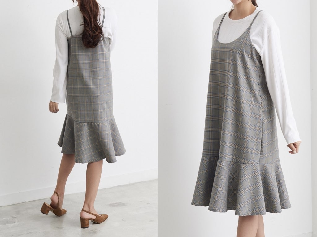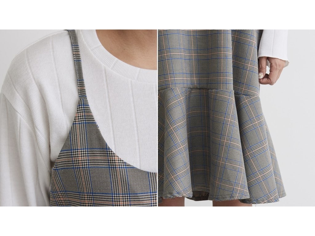 チェック柄のフリルが「ふわっふわ」としたワンピースです。とても丁寧なつくりとなっており、ゆったりと着ることができます。1.基本情報色:ベージュ(淡い)、グレー(濃い)サイズ:Free素材:ポリエステル97%、スパン3%製造国:Korea2.サイズ情報肩幅:21cm 身幅(胸断面):46cm アームホール:24cm 着丈:101cm(サイズは計る方法に応じて±2〜3cmの誤差があります。ご了承お願い致します)モデル着用サイズ:F※着用モデル(163cm、体重47kg、足のサイズ245mm)3.その他の情報厚み:中間透け感:なし伸縮性:中間裏地:なし洗濯方法:ドライ(クリーニング)お取り寄せ商品は、納品まで約10日前後いただきます。ご了承お願い致します。