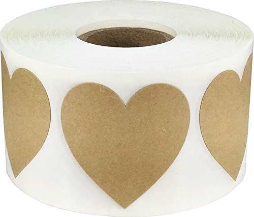InStockLabels Heart Stickers 1 1/2 Inch 500 Adhesive Stickers, Natural Kraft
