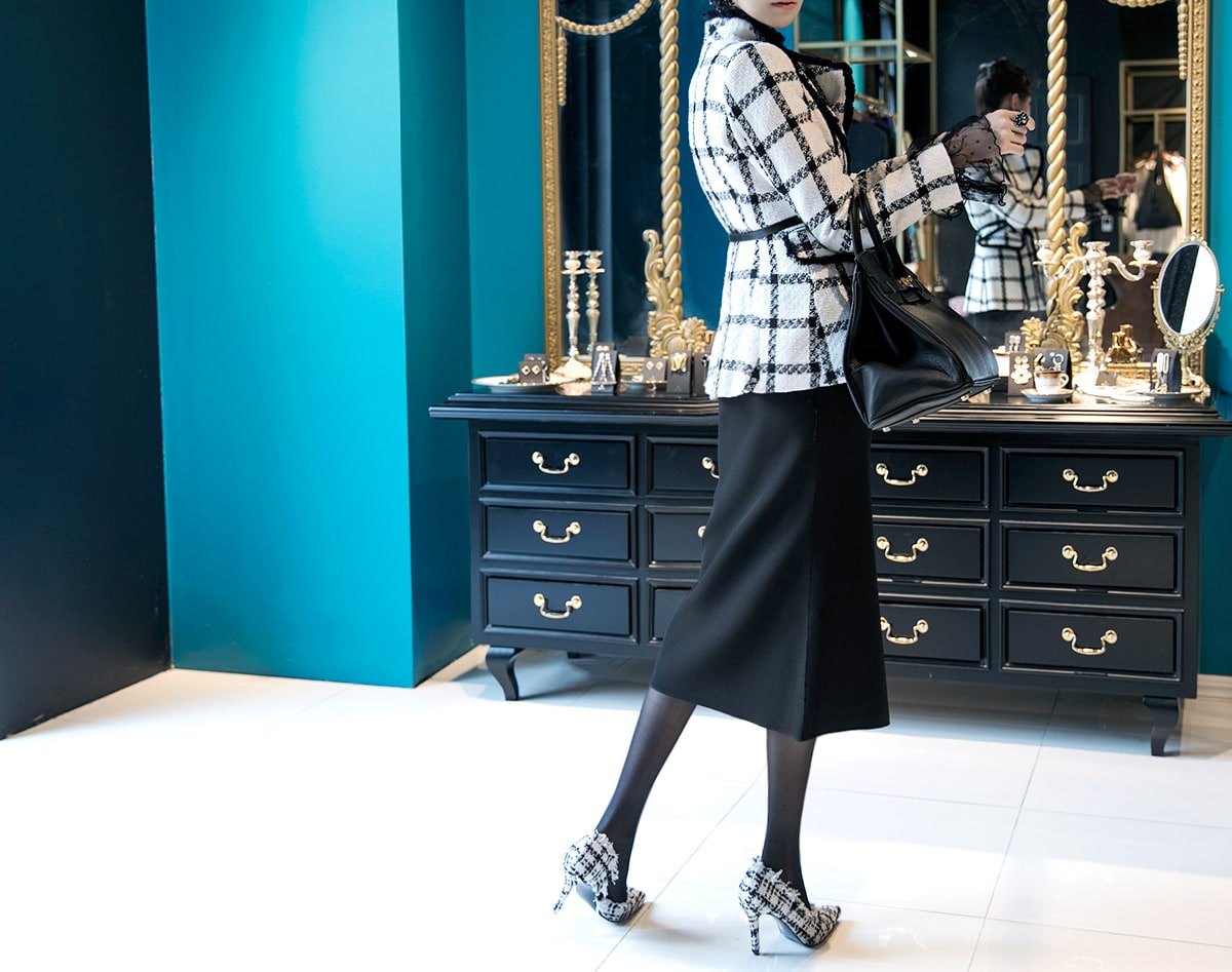 AR-2165 스틸레토 트위드 라인 힐 Ivory