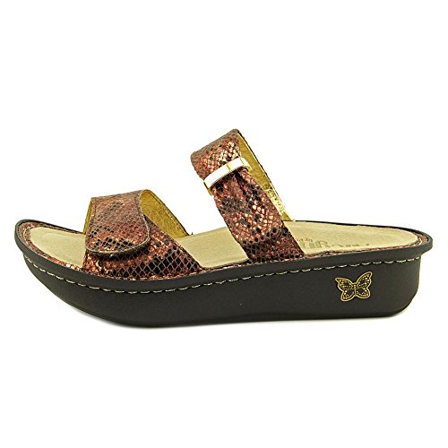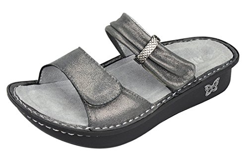 Studio : Alegria Publisher : Alegria Binding : Apparel Product Description Women's Karmen by Alegria Uptown or downtown, step into glamour with the Women's Karmen toe-post sandal by Alegria. Leather upper Leather lining Removable cork, memory foam and latex loaded footbed Mild rocker outsole engineered to roll naturally to encourage proper posture 1 3/4- inch heel height, 1 1/4- inch platform height 0