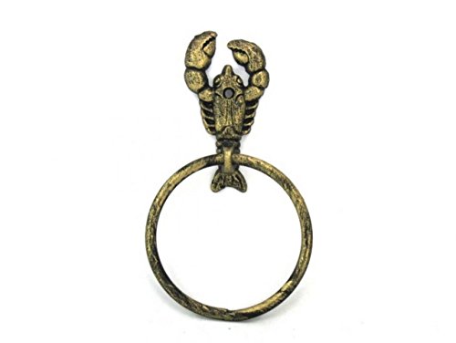 Hampton Nautical K-9007-gold Antique Gold Cast Iron Lobster Towel Holder 9" - Lobster Decoration - Beach Bathroom Decor - Cast Iron