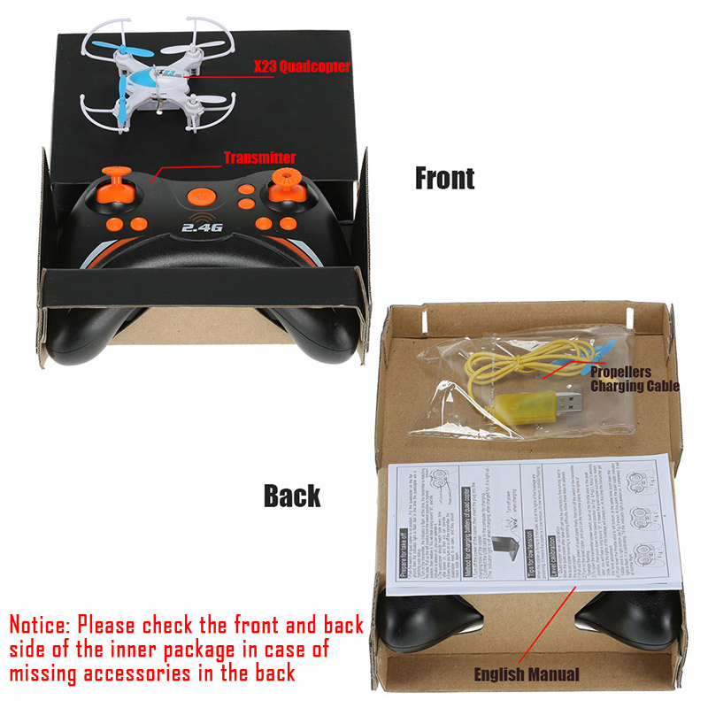 This original Song Yang X23 aircraft is unique in its mini size. It is small and light enough to fit literally anywhere! This drone can do 360 degree flip and the built-in six-axis gyro will promise you a stable flight. Just Come and get it home!