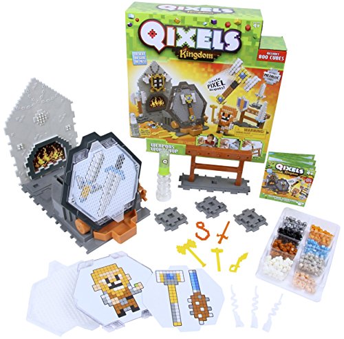 Prepare for Battle! Qixels Kingdom is at risk of total destruction! Savage trolls have attacked King Qixels' castle and are trying to take control of the land! Help defend your castle by creating powerful pixel weapons for the King's army. Make, spray and display your weapons in the Weapon's Workshop! This workshop station is fully compatible with templates from the Qixels Kingdom range. With metallic cubes found in this pack and everything you need to make, spray and play - all this Kingdom is waiting for is you!Feature