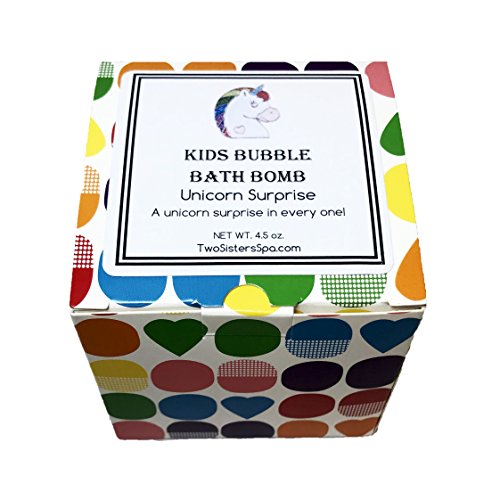 Unicorn BUBBLE Bath Bomb with Surprise Necklace Inside - in Gift Box - Kids Bath Fizzy By Two Sisters Spa - Homemade by Moms in the USA