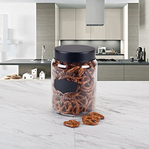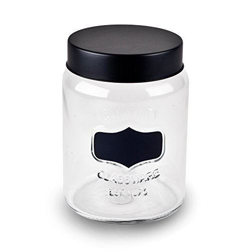 Housewares International 33834 Blue Harbor Glass Quality Jar with Chalkboard Label, 37 oz, Clear