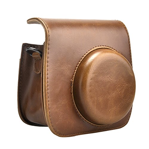 SKmoon PU Leather Instax Camera Accessories Compact Case Vintage Shoulder Bag with Pocket for Fujifilm Instax Mini 8 Instant Film Camera (Brown)