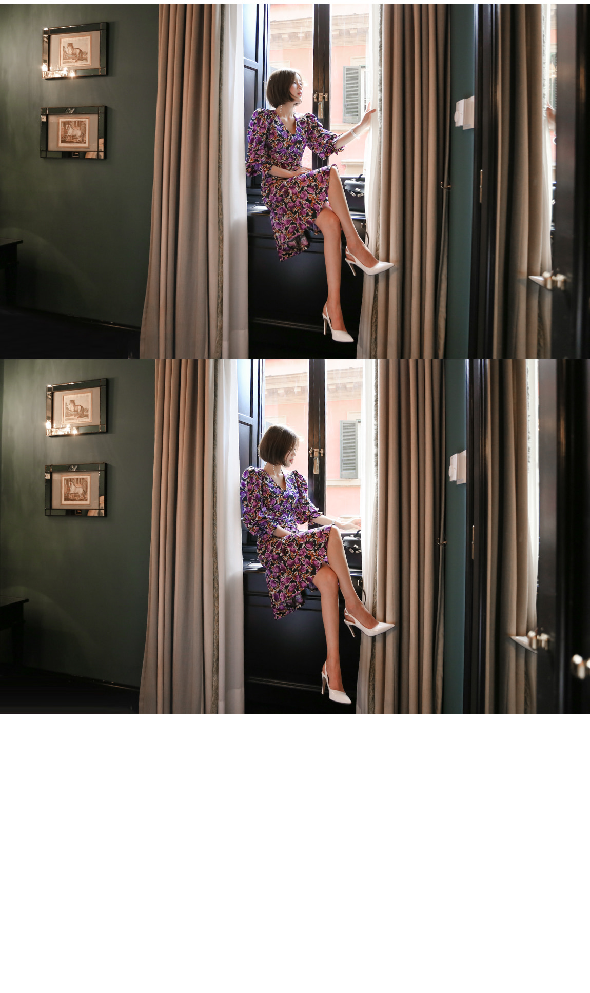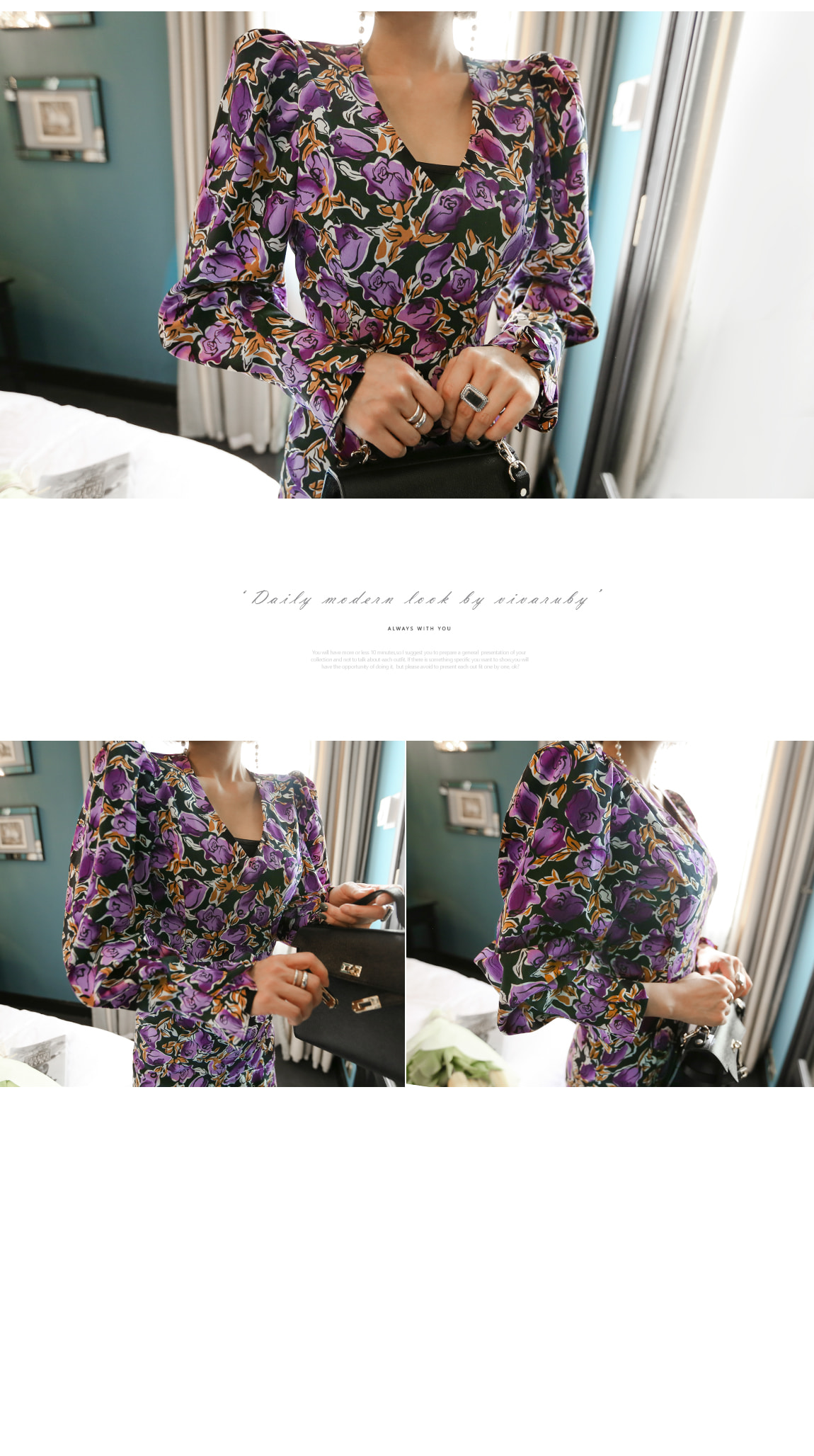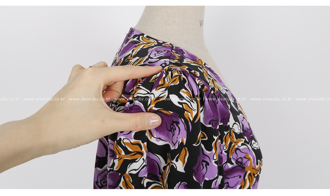 소매의 셔링 디테일로 러블리한 포인트를 주었어요