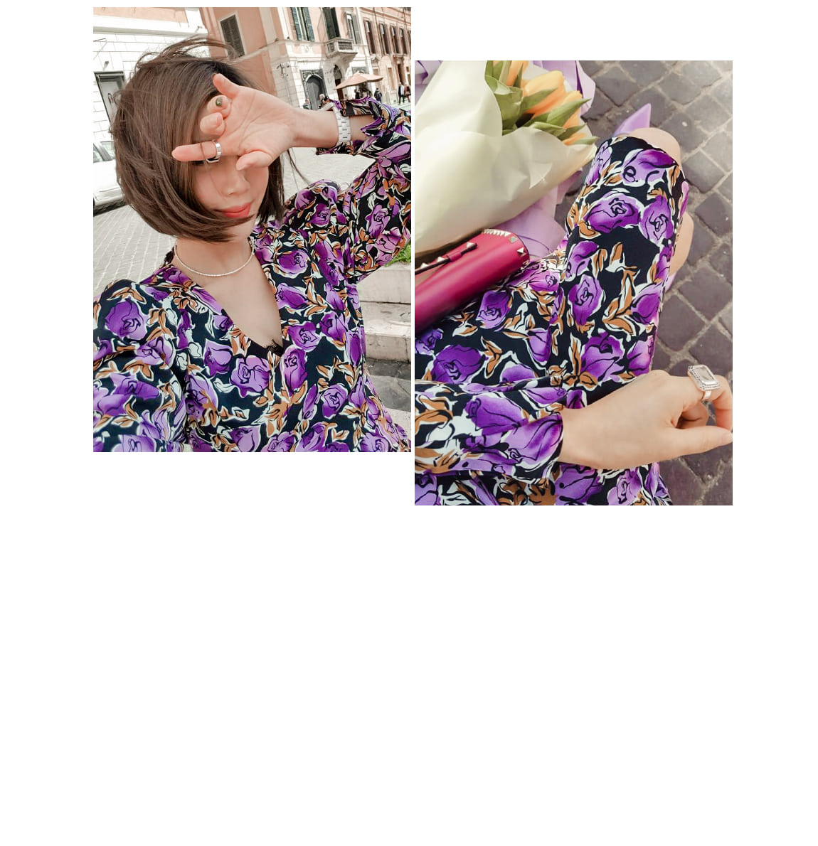 全体的なフラワーのパターンにフェミニンなムードを作ってくれながら
