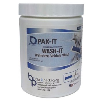 -. Feature : Pak-It 555520002240 Wash-It Waterless Vehicle Wash, Breezy Scent, 20/Jar / Pack more in with PAK-ITR. Unique, vehicle wash is specially formulated to remove bird mess, dust, insect residue, oils and road tar. Water-Soluble Liquid Packet? makes it easy V just submerge PAK in water, shake, wait two minutes and you're ready to go. Each PAK yields 32 oz.