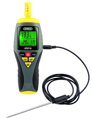 General Tools EP8710 Calibratable Multi-Function Digital Psychrometer, Wet Bulb Capable with Probe