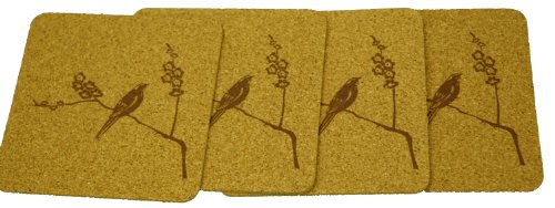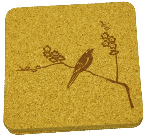 Cork Nature Korko 490412 Cherry Blossom Brown Coasters, 3mm, Set of 4