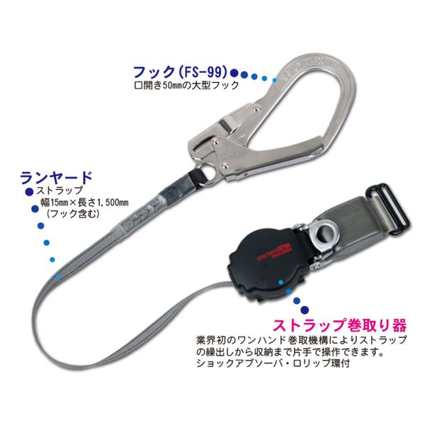 ●胴ベルト型安全帯用巻取り式ランヤードです。