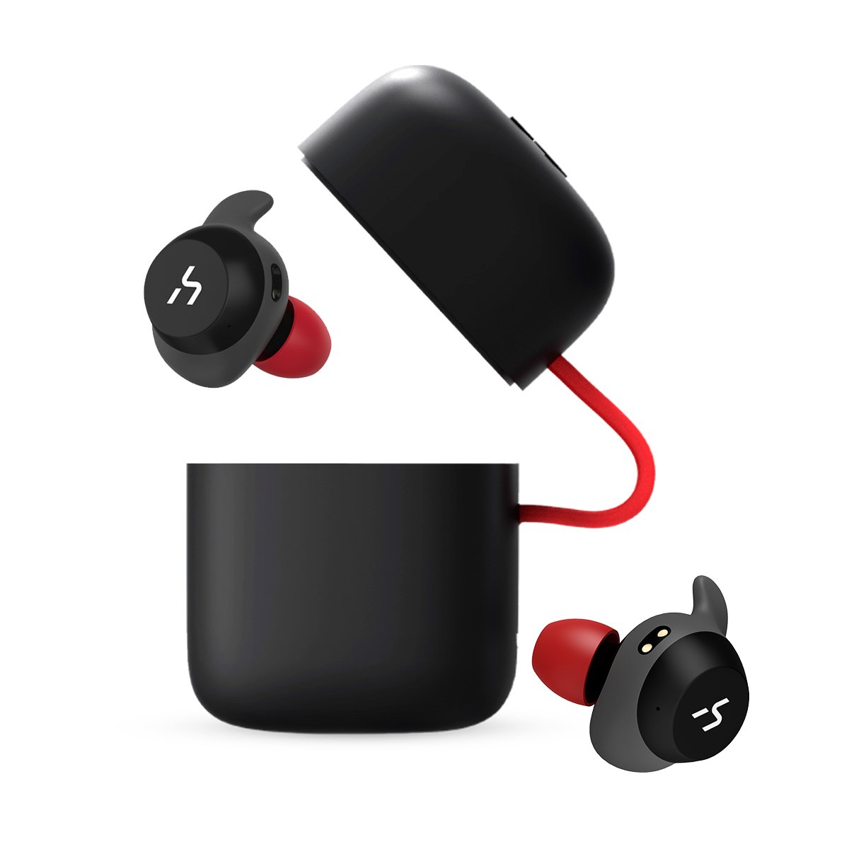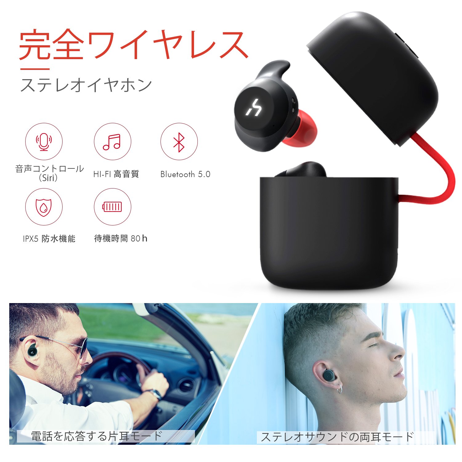 HAVIT「Bluetooth 5.0 」Bluetooth イヤホン完全ワイヤレスイヤホンTWSイヤホン スポーツイヤホン AAC対応/Siri対応/IPX5防水規格/最大18時間音楽再生/高音質チタンドライバー搭載 片耳両耳とも対応 自動ペアリング自動ON/OFF スポーツ、日常用 充電収納ケース付 左右分離型 マイク内蔵 G1黒+赤
