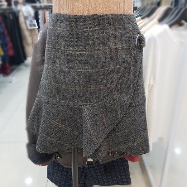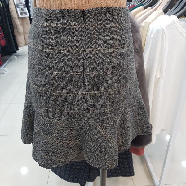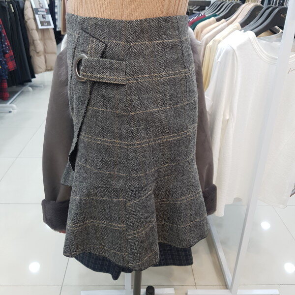 부드러운 그레이컬러에 유행없이 겨울철 항상 나오는 헤링본 소재감으로 자켓과 벌코디도가능하고 단품코디로도 훌륭한 스커트 여성스러운 플러어 라인과 속바지를 따로 연출하지않아도 속바지처리까지 되어있는 아이템