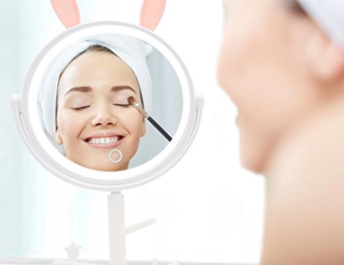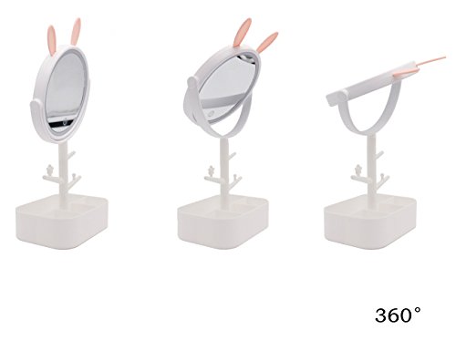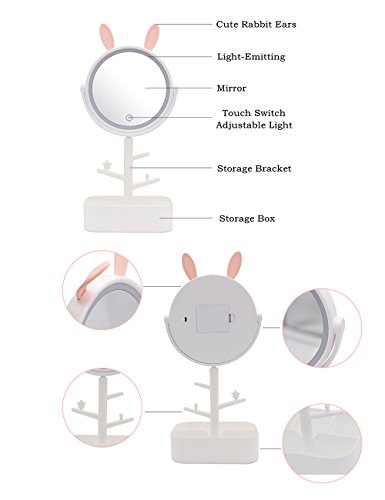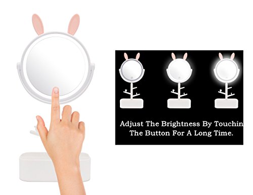 AODAILIHB LED Makeup mirror Enough Storage Bottom Box Cute Rabbit-Shape Soft Lights Dimming By Touch Screen Two In One Traveling Cosmetic Mirror...
