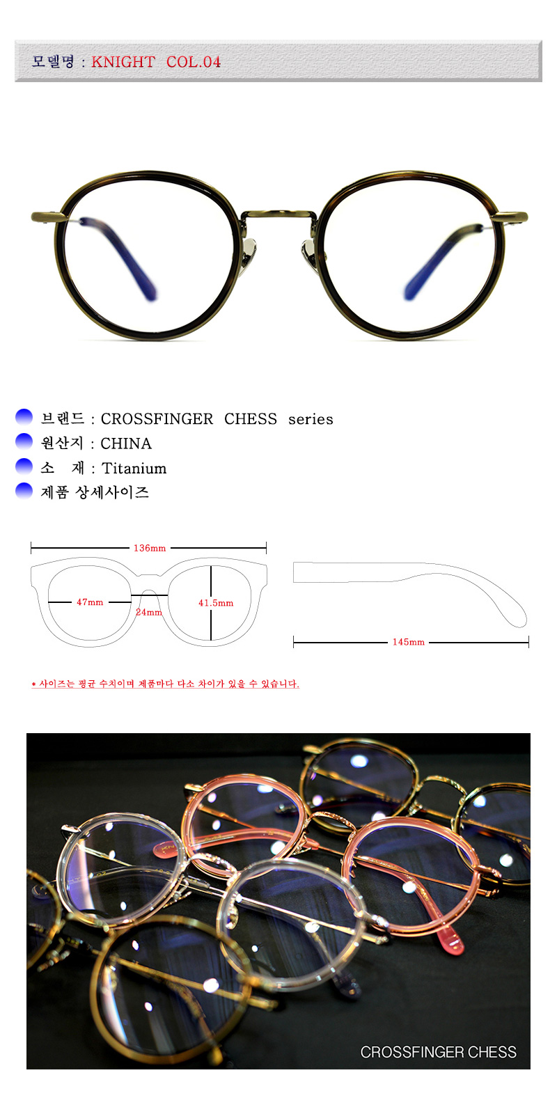 Titanium과 고급 셀룰로이드아세테이트를 이용하여 만든 가볍고 깔끔한 둥근 메탈프레임.
