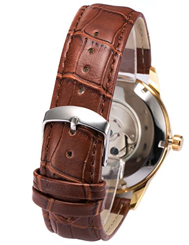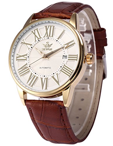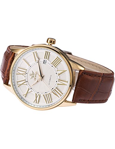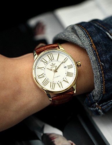 AMPM24클래식 골드 케이스 맨즈 자동기계 식날짜 표시 레더 아날로그 손목시계 손목시계 PMW285