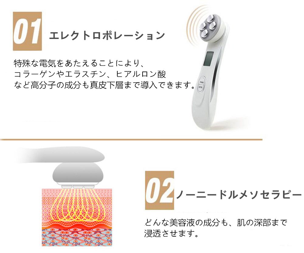 Introduction of popular electroporation + no needle mesotherapy introduction (penetration rate is 20 times the usual facial instrument) Function as it is, with EMS + LED light esthetic function installed.