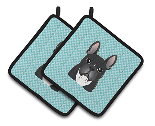 Caroline's Treasures Checkerboard Blue French Bulldog Pair of Pot Holders BB1165PTHD, 7.5HX7.5W, Multicolor