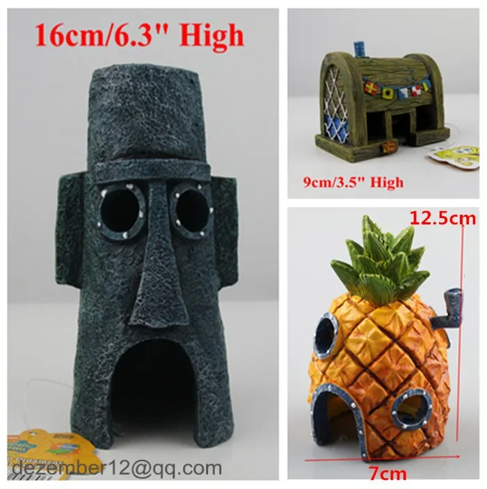 Spongebob fish tank Decoration:Pineapple House, Squiduard Easter Island, Krusty Krab