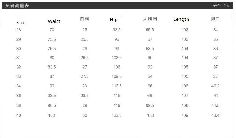 Size:28-38, PLEASE choose size as the size table,if you don't know how to choose size..