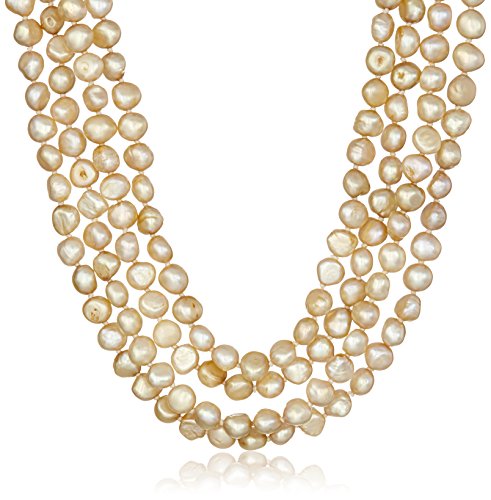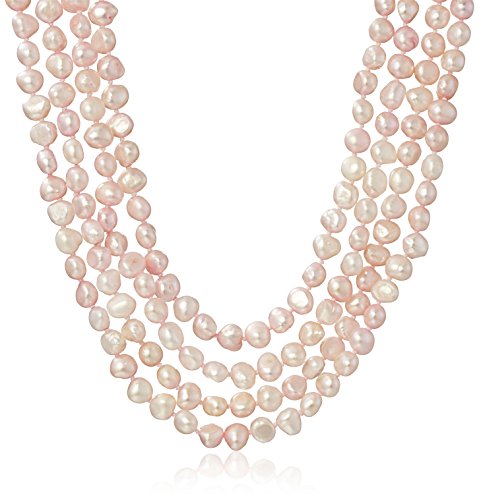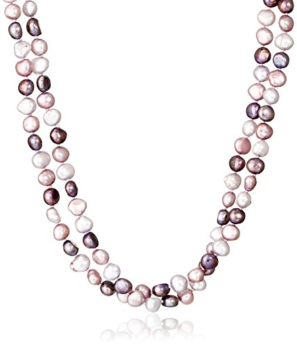 Give your feminine and classic style a colorful twist with the Freshwater Purple Baroque Pearl Endless Necklace (6-7mm), 100". Freshwater-cultured pearls showcase their high-luster and unique baroque shape along a simple chain. The single knots that are placed between each pearl protect the pearls surface, or nacre, and allowing the beautiful purple color to remain wear after wear. The long 100" length creates a very versatile strand. Wear it as one long length to create an edgy look or try layering the strand to showcase your girly and glamorous style with a variety of necklines.Feature
