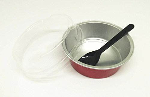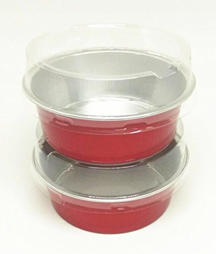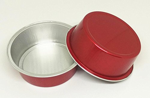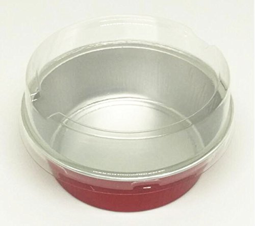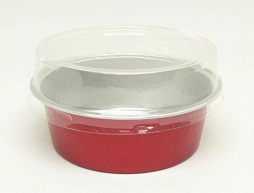 Set of 24, MYStar 3-3/4" Round Shape Non-stick Aluminum Cups, Tarlet Pans, Mini Pie Tins with Lids and Spoons for Muffin, Cupcake & Pudding, 150ml, Red