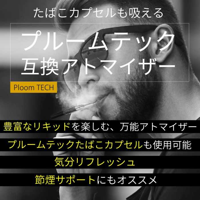 【商品説明】・お好きなリキッドを入れてプルームテックカプセルを吸うことができる、ドリップチップ(キャップ)付きのアトマイザーです。・プルームテックと互換性のあるバッテリーでご利用いただけます。