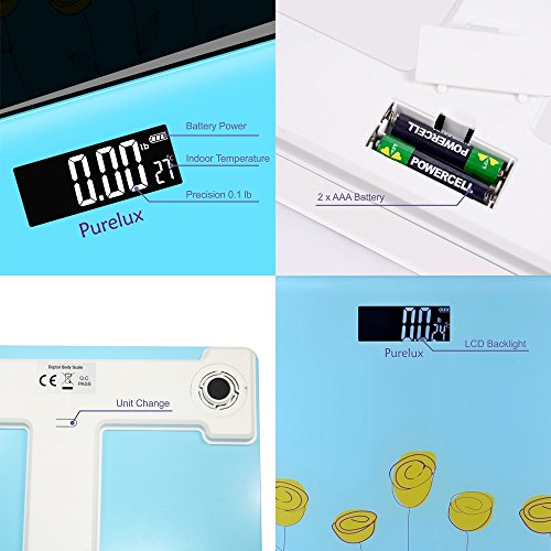 -. Title : Purelux Bathroom Digital Body Weight Scale with Step-on Technology, Precise Measure Stable Reading, 400 Pounds, Tempered Glass