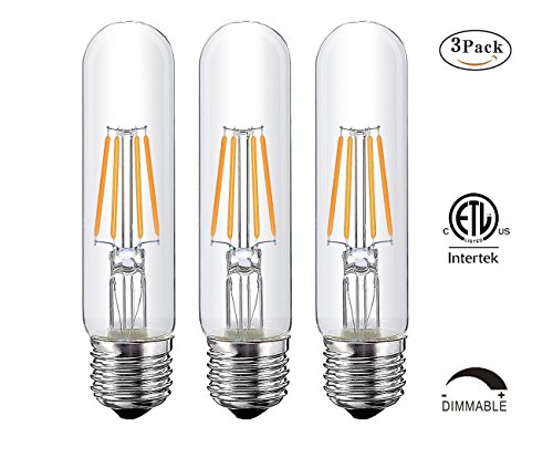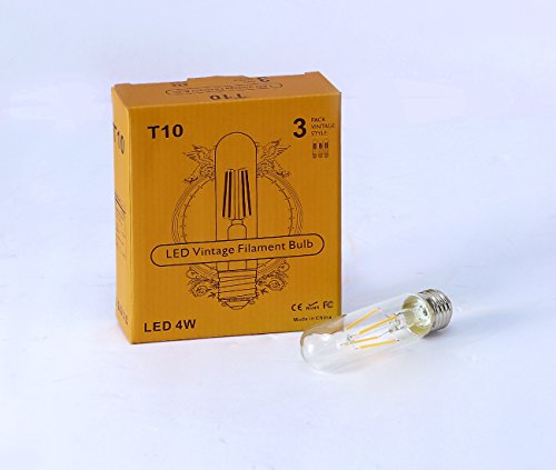 T10 Led Bulb, 4W Tubular Led Bulb, Dimmable Led Edison Bulb,Led Filament Bulb, T10 Nostalgic Led Bulb, E26/E27 Medium Base, 40 Watt Incandescent Bulb Equivalent, 2700K Warm White,400LM, 3 Pack