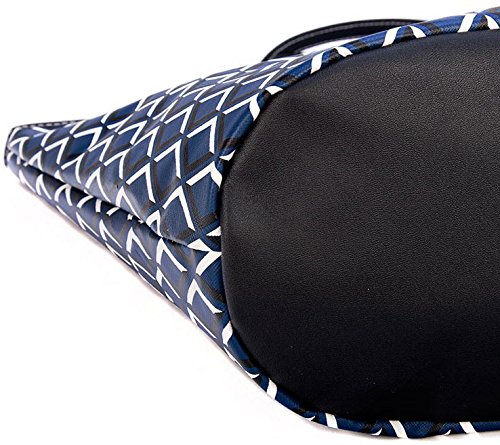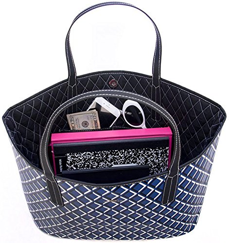 -. Feature : Durable and water resistant embossed PVC / Double handles / Snap closure / Keep your phone, wallet, and keys organized in the two interior pockets