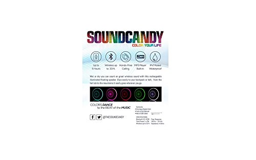 -. Binding : Electronics -. Brand : SoundCandy -. EAN : 0814092020279 -. Feature : Bring it to the beach, hiking, or even snowboarding! The SoundCandy AquaSplash powered by LiveLights Technology goes wherever you do! / includes Mp3 player that works with a Micro SD Card, FM Radio and hands free calling. / This Waterproof speaker comes with a clip to attach to your backpack or belt, making this speaker incredibly portable. -. Label : Gluten Free Palace - HPC -. Manufacturer : Gluten Free Palace - HPC -. Model : C3013WHB-BT -. MPN : C3013WHB-BT -. PackageQuantity : 1 -. PartNumber : C3013WHB-BT -. ProductGroup : CE -. ProductTypeName : PORTABLE_AUDIO -. Publisher : Gluten Free Palace - HPC -. Studio : Gluten Free Palace - HPC -. Title : SoundCandy C3013WHB-BT Aqua Splash Speaker -. UPC : 814092020279