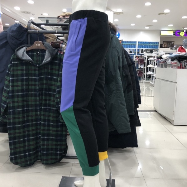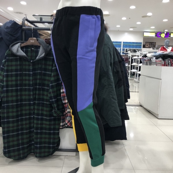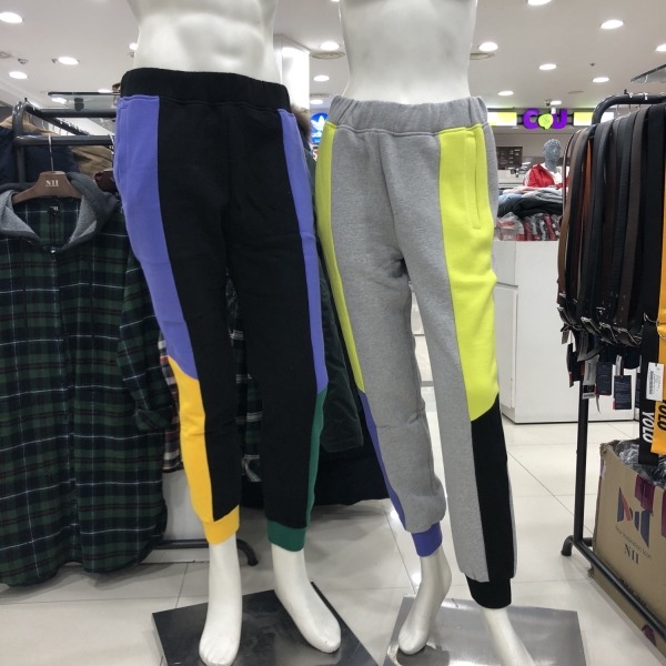 유니)컬러절개배색기모쭈리팬츠