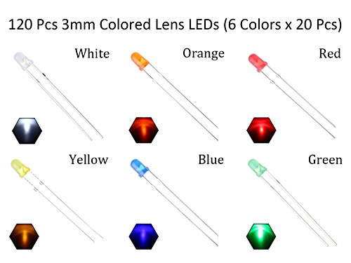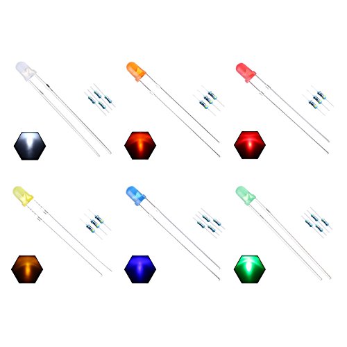 EDGELEC 3mm 6 Colors x 20pcs (120pcs) Assorted Colors Lights LED Diodes (Colored Lens) Diffused Round Top 29mm Long Feet +200pcs Resistors (For DC 6-13V) Included / Bulb Lamps Light Emitting Diode