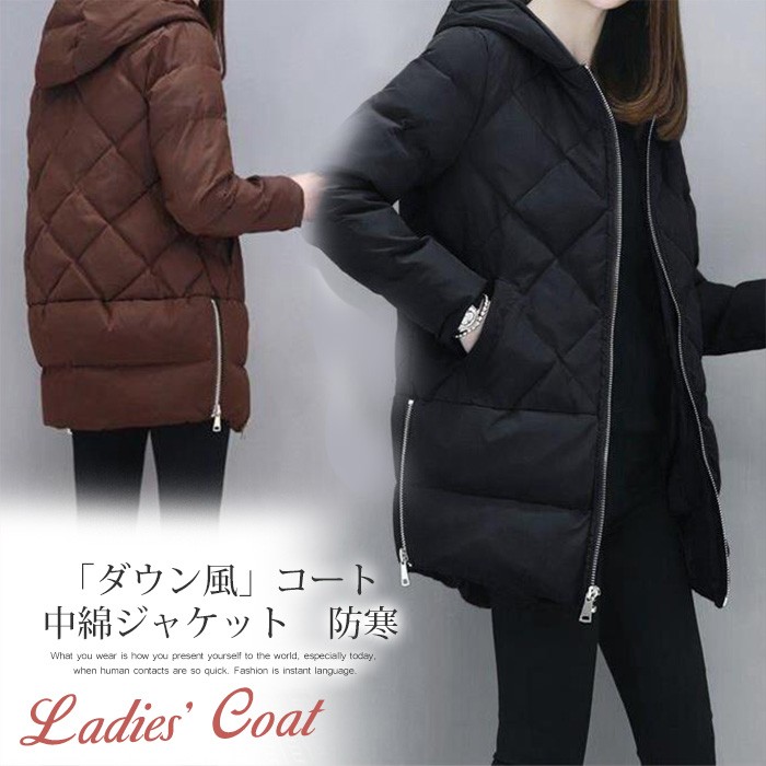 中綿ジャケット レディース ブルゾン 中綿コート ダウンジャケット アウター ロングコート 冬 防寒 ダウンコート フード付き ダウン風コート コート Aラインコート 大きいサイズ ミディアム丈 レディースアウター 長袖 軽量 中綿ダウンコート 大人 可愛い 冬用 ゆったり 体型カバー 暖かい 防風 防寒 厚手 オシャレ 20代 30代 40代 50代 ファション★素材:ポリエステル ★詰め物:中綿★伸縮性:なし ★生産国:中国 ★カラー:黒 コーヒー色※お客様ご使用のPC環境により商品画像のカラーが多少異なる場合があります。仕入時期により多少デザインなど異なる場合があります。ご了承ください。★サイズ(CM):M:着丈77 バスト104 肩幅40 袖丈59L:着丈78 バスト108 肩幅41 袖丈60XL:着丈79 バスト112 肩幅42 袖丈612XL:着丈80 バスト116 肩幅43 袖丈62※サイズは人の手によって測っているため、1-3cmの誤差がある場合がございます。予めご了承下さいませ。