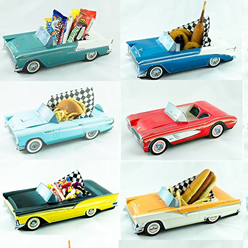 -. Feature : The ultimate 1950's Classic Collection in a 12 Car Set / Cardboard Replica of 50's Classic Cars Make Great Addition to Party or Event / Free Wax Paper Food Liners Included in Every Set for Every Car (Food/Candy is not included) / Can be used as Food Container, Candy holder, Centerpiece, Party Favors / Easy to Assemble, They Come in One Piece with Easy Instructions on the back of each Car