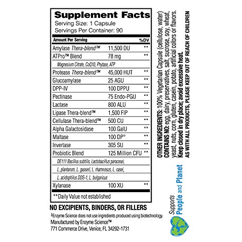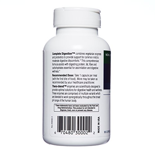Enzyme Science Complete Digestion - Even individuals who consume a healthy diet may experience digestive difficulty from time to time. These difficulties often manifest themselves in a variety of symptoms including occasional gas, bloating, indigestion, abdominal discomfort, distention, irregularity and general food intolerance. While antacids and laxatives may be used to treat symptoms, they fail to address the underlying cause of impaired digestion. Continuous use of such symptom suppressors may result in dependency. Complete Digestion provides digestive support from a synergistic blend of digestive enzymes, probiotics and nutraceuticals. This combination not only provides critical support for a healthy intestinal environment, but also works to aid impaired digestion, a fundamental cause of intestinal disturbance. Enzymes are the most effective tools made by the body to aid digestion and assimilation of nutrients. Nutrients supplied to the body are utilized as energy for various biological processes. When there is an insufficient quantity of digestive enzymes present in the body, undigested food may pass into the large intestine and be acted upon by intestinal flora. Byproducts'of bacterial digestion and yeast fermentation include hydrogen, carbon dioxide and methane gas. The consequence of such combination results in familiar symptoms of occasional gas, bloating, and inflammatory responses which may damage gut integrity. Enzyme supplementation encourages healthy digestion of proteins, fats, fibers and carbohydrates, in addition to promoting an optimally functional Gl tract.Feature