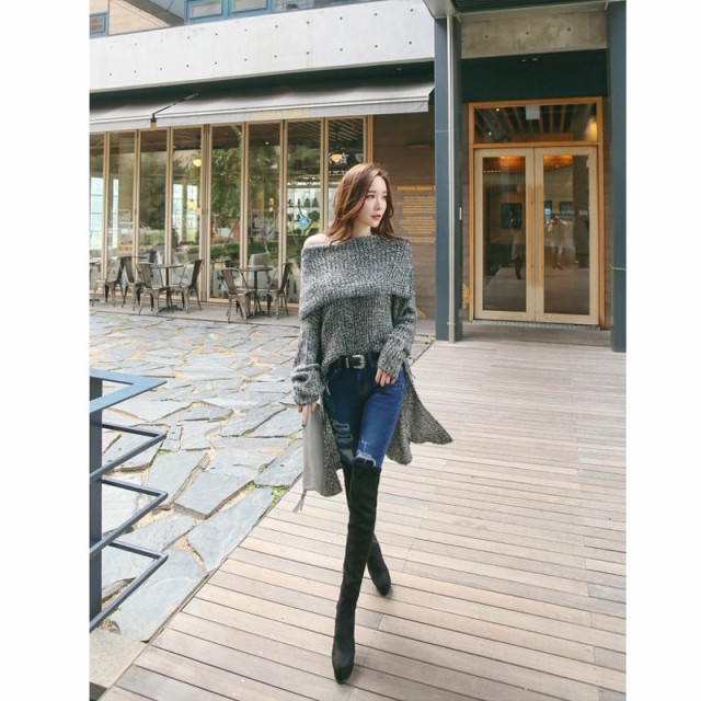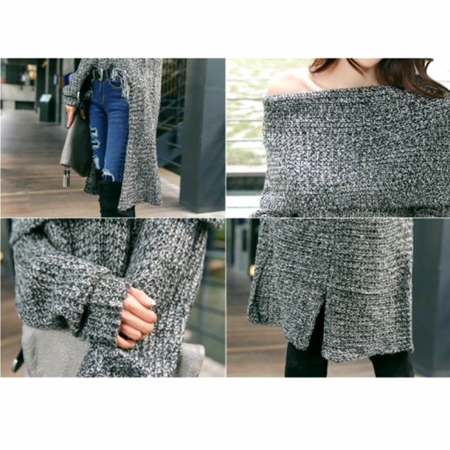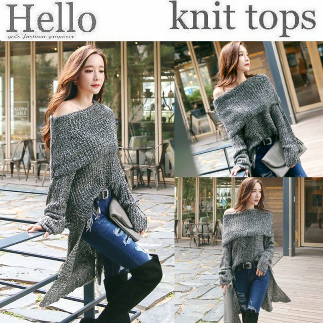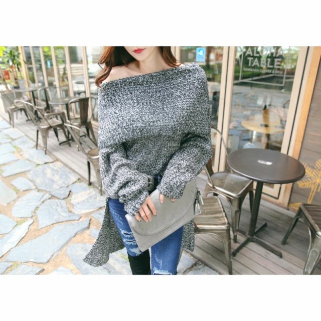 オフショルダーな着こなしができるニットです。