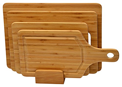 5 piece Bamboo cutting board set - Strong, Durable, No knife dull and Eco friendly